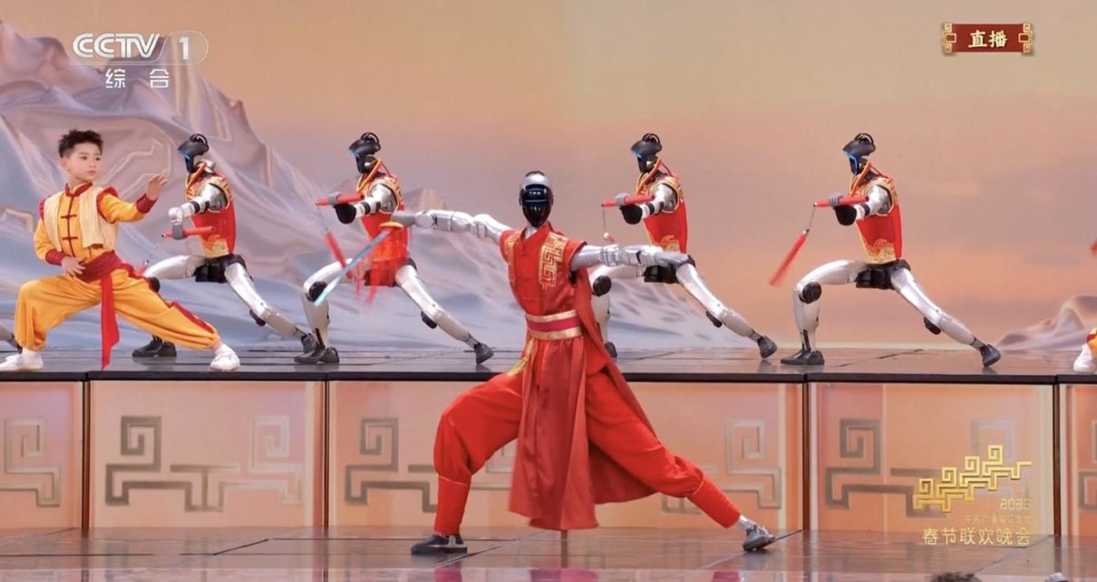 Çin’de Bahar Bayramı’nda sahne alan insansı robotlar, sergiledikleri senkronize performans, taklalar ve geleneksel silah gösterileriyle teknolojide gelinen noktayı gözler önüne serdi.